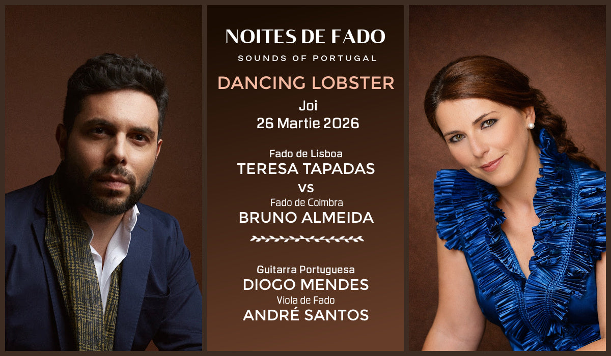 Fado Clasic (Lisabona) este melancolic, intens și profund personal, reflectând viața cotidiană, dorul și pasiunea. Invitata serii este Teresa Tapadas, una dintre vocile marcante ale fado-ului contemporan. Cu un timbru cald și o interpretare plină de emoție, Teresa aduce pe scena de la Dancing Lobster melodii emblematice ale fado-ului lisabonez, într-o interpretare autentică și rafinată.